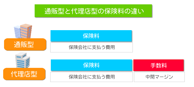 車の保険料は同一条件(年齢・車種・等級・補償内容)でも保険会社によってかなり金額差があります。代理店型は仲介手数料を取られることになるので、どうしても通販型と比較すると保険料が高くなります。